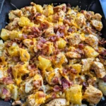 A hearty one-pan meal featuring tender chicken, crispy turkey bacon, and creamy cheddar cheese, perfect for busy weeknight dinners or weekend gatherings.